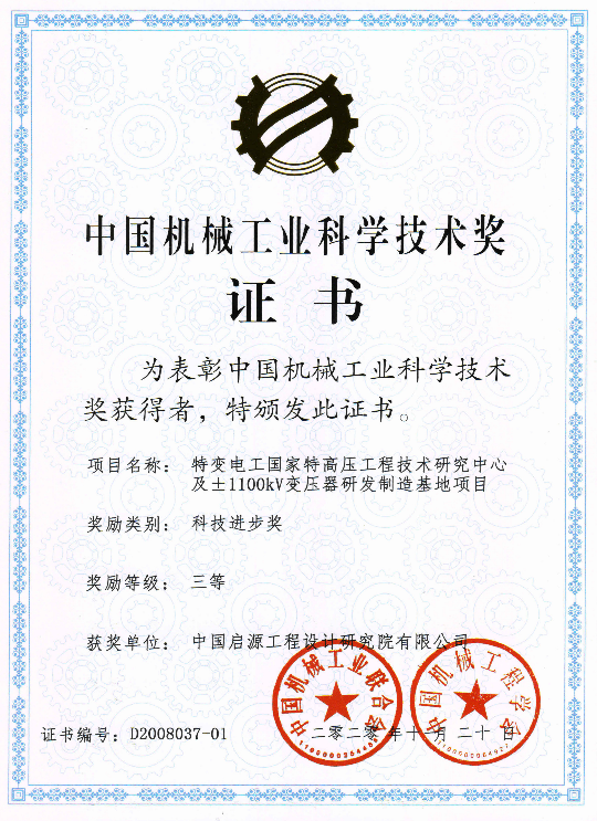 The Assembly of New-generation Liquid Oxygen Kerosene Engine completed by the New Era (Xi’an) Design Engineering Co., a subsidiary of China Qiyuan, won a second prize. The Research Center of TBEA National UHV Engineering Technology and the ±1100kV Transformer R&D and Manufacturing Base completed by China Machinery Engineering (Xi’an) Qiyuan Consulting & Design Corporation won a third prize.