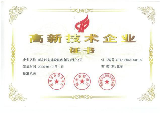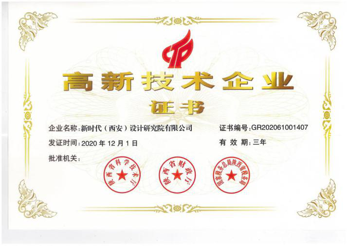 Recently, the New Era (Xi’an) Design Engineering Co., Ltd., the Xi’an Si Fang Construction Supervision Co., Ltd., and the Xianyang Company under China Qiyuan Engineering Corporation respectively passed the 2020 High-tech Enterprise Identification and received the National High-tech Enterprise Certificate jointly issued by Shaanxi Provincial Department of Science and Technology, Shaanxi Provincial Department of Finance, and Shaanxi Provincial Tax Service under the State Taxation Administration.